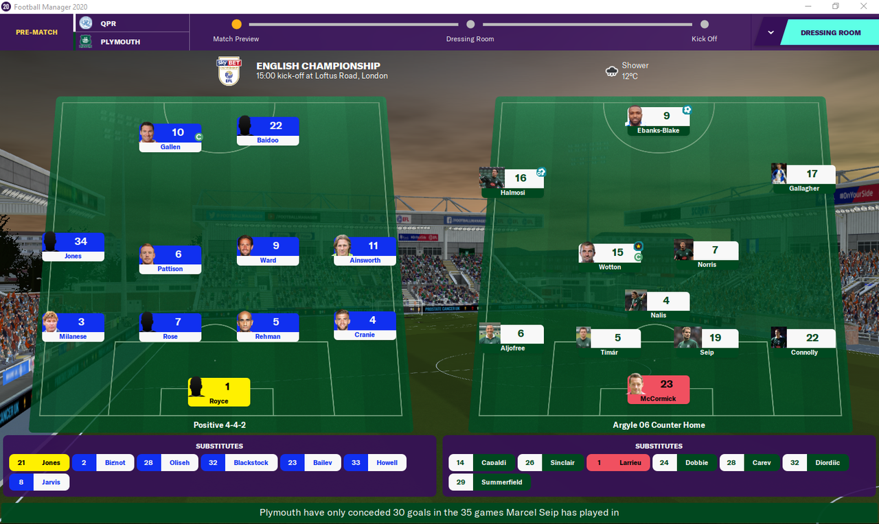 Our friends QPR up next. Gallen captains the Rangers, with unknown striker Baidoo partnering him upfront.
