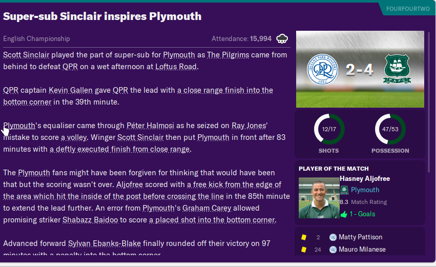 Anyway, its 1-0 to QPR.