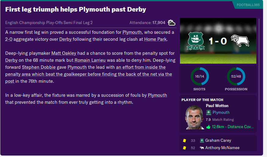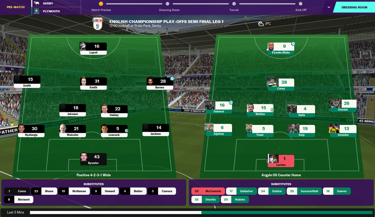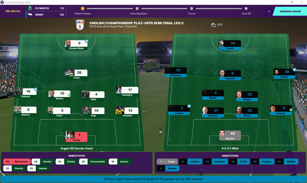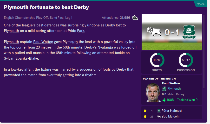 So here we are, play-off finals of the 2006/07 Championship season. These next few games will make or break my time at the club. We turned around our poor form that almost saw us fall out of the play-off spots all together and we now face Derby County – who in real life would go on to win them and become the worst Premier League team of all time.
