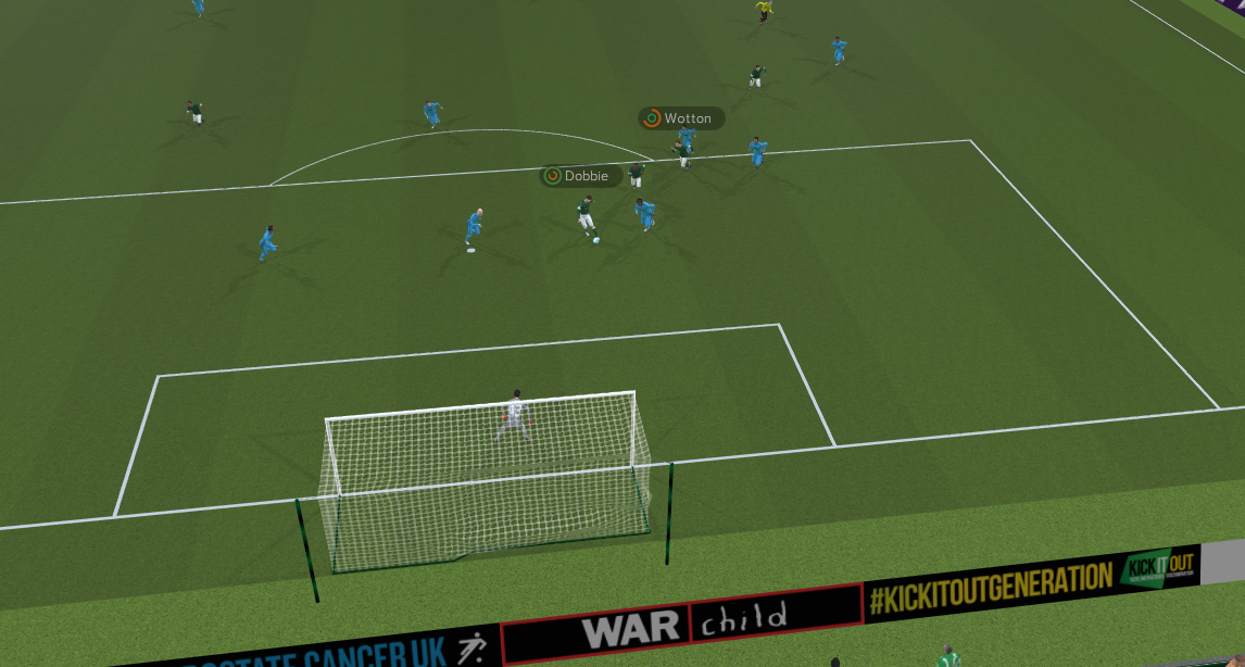 Welcome to London. This new stadium is alright isn’t it. Scott Sinclair is back in, Stephen Dobbie is on the bench and is unfortunate to be missing out. I want Carey on that pitch. Time to redeem his future self.
