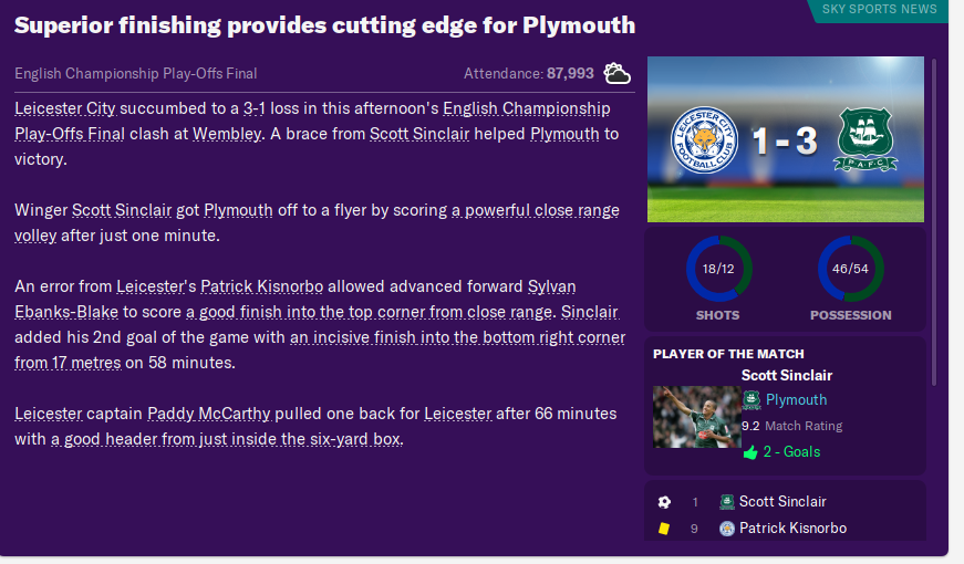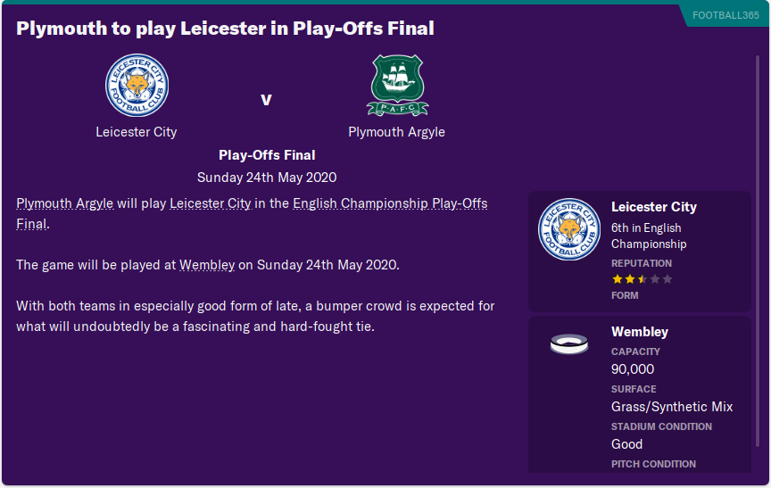 Fun fact, in real life, the 2007 Championship play-off final was the first one to be played in the new Wembley after it opened in March of 2007. It only adds to the drama of the occasion.