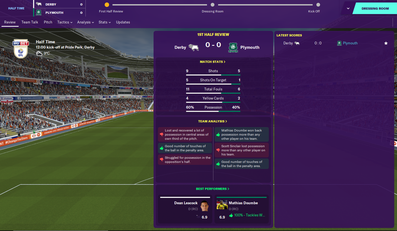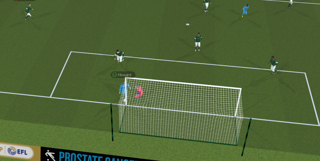 42 minutes into the first half, and we have had the majority of good chances. If we could just get that one goal that will give us some breathing space. A wide free-kick from Derby comes in from Derby’s McNamee – a goal just before half-time could completely spin the momentum in their favour…