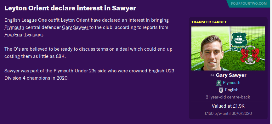 Found it interesting how Leyton Orient want Sawyer, a team that he would go on to play for.