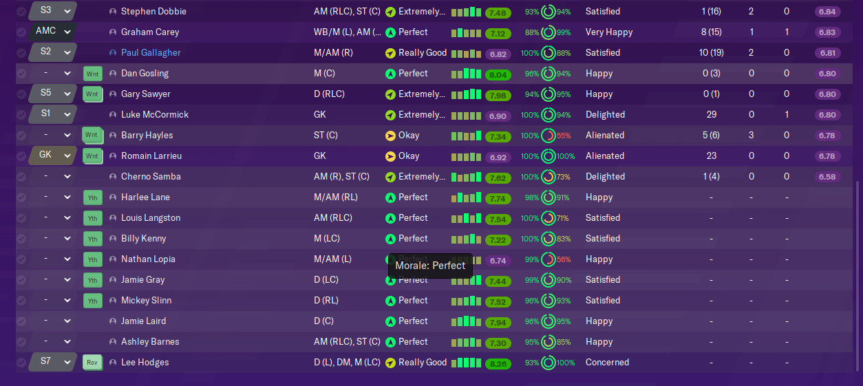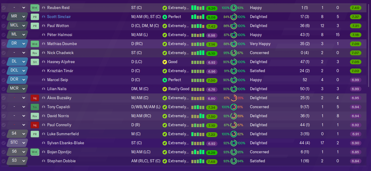The biggest team-selection choice I had was Luke or Romain. Luke had the better record, but Romain was better rated – just. I gave it to Ro for sentimental reasons mostly. The rest of the team picks it self. Carey who has hardly done anything in a green shirt since I bought him is the only questionable choice.