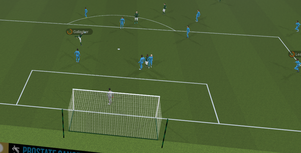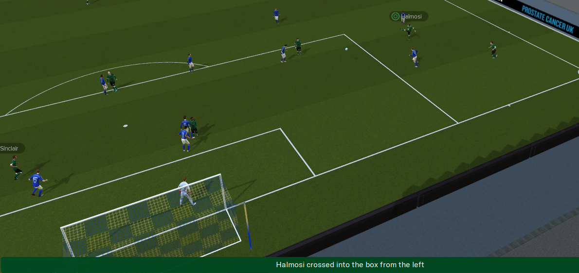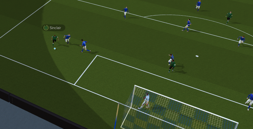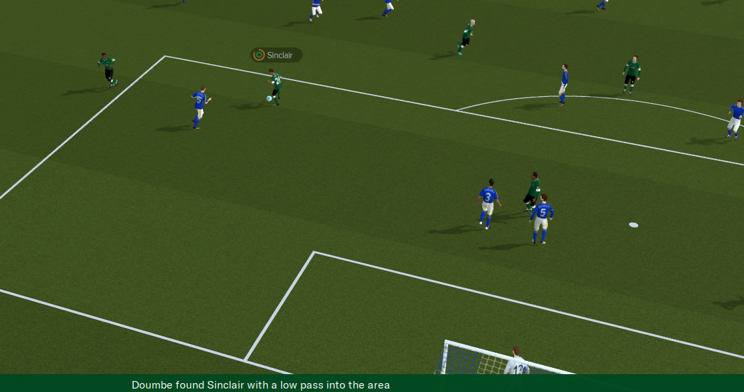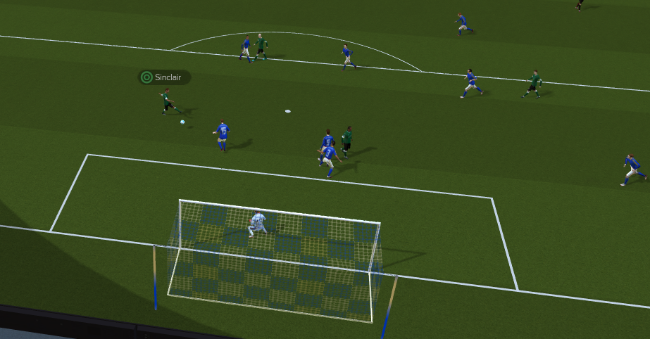 10 minutes into second half Sinclar receives the ball in the box with his back to goal.