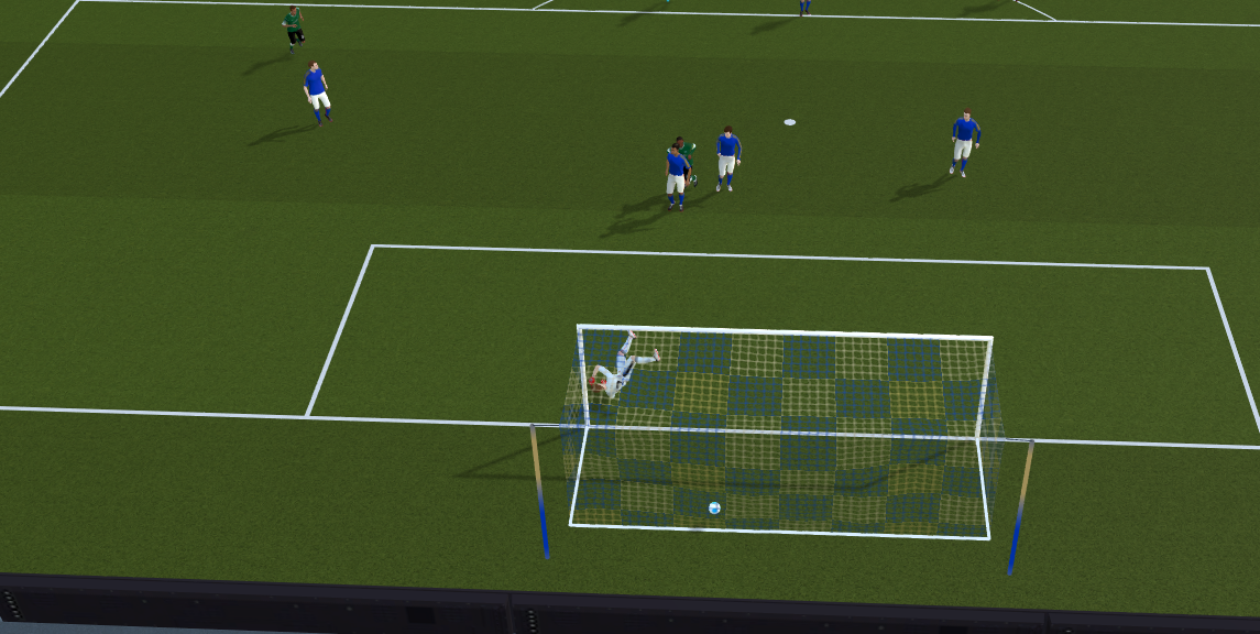 Not one, but two goal saving blocks from Larrieu and Timar keep the ball out.