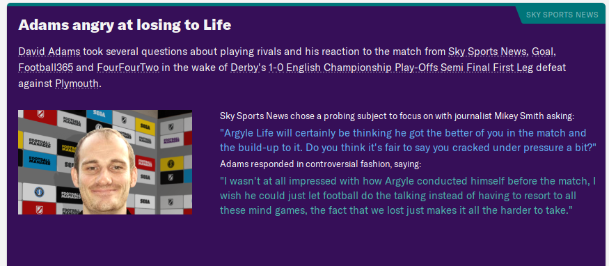 I get into a little spat with Derby manager, D.Adams – no, not that one.
